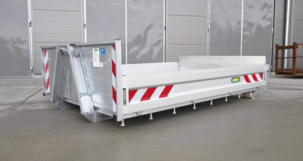 Einfach handzuhaben und vielseitig einsetzbar - die Schüttgutmulde ergänzt den Abrollkipper perfekt.