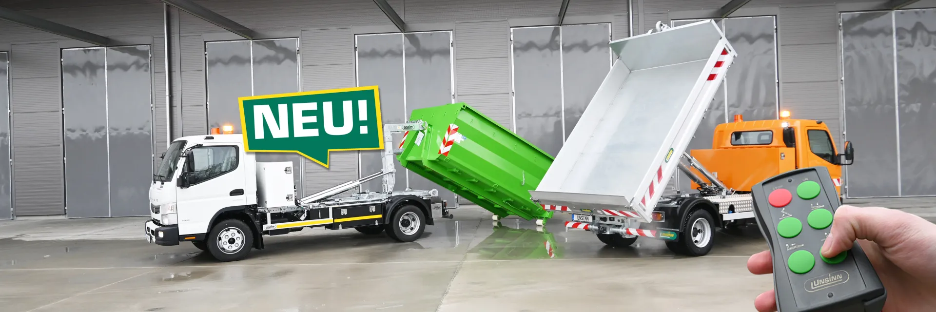 Per Funkfernbedienung lässt sich der Abrollhaken mit neuer Sanftanlaufsteuerung intuitiv bedienen. Damit kommt der Abrollbehälter sanft, kontrolliert und geräuscharm am Boden auf. Das UNSINN Abrollsystem bewegt Container mit einer Hub- und Kippkraft von 5 bis 7 Tonnen und wird auf das zulässige Gesamtgewicht Ihres Fahrzeuges angepasst. Der Abrollhaken, bestehend aus einem Schub- und zwei Kippzylindern, ist komplett im Tauchbad feuerverzinkt. Die massive Bauweise sorgt für eine lange Lebensdauer und geringen Wartungseinsatz.