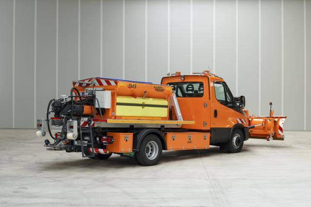 Der Abrollkipper eignet sich als effizientes Fahrzeug für den winterdienstlichen Einsatz. Mit einem angebrachten Schneeschild und einem idealen Aufbau kann Schnee und Eis getrotzt werden.