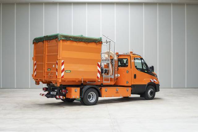 Die City-Pritsche verleiht dem Abrollkipper Flexibilität und Effizienz.