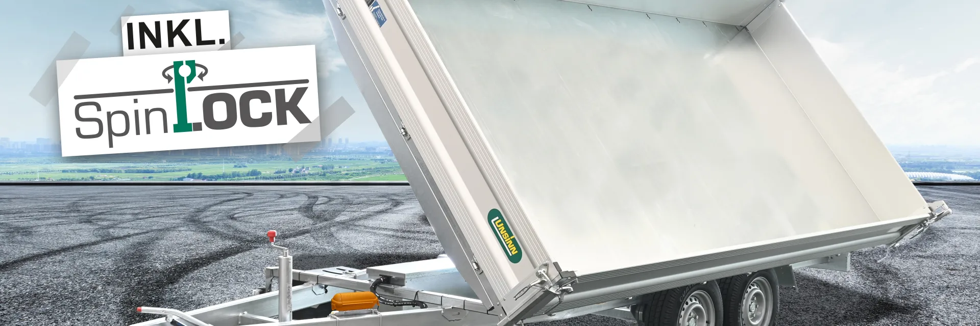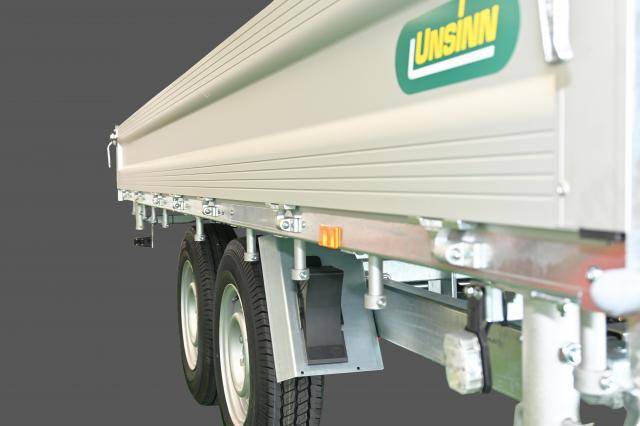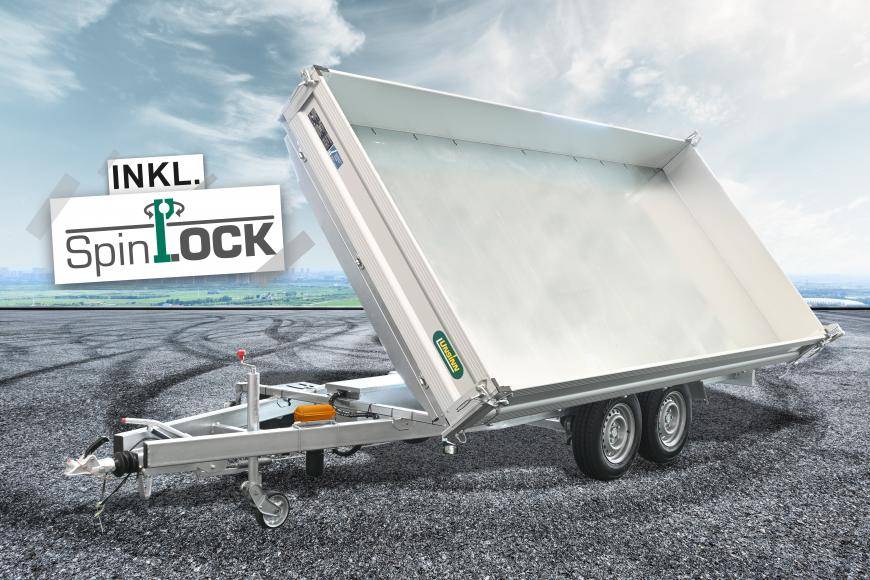 Als echtes Multitalent meistert der Dreiseitenkipper Typ UDK 3542-14-2040 verschiedensteEinsätze spielerisch. Schüttgut wie Erde, Kies und Späne transportiert er ebenso mühelos wie Baumaschinen, Minibagger oder Rasenmäher. Das macht ihn zum unverzichtbaren Helfer im Garten- und Landschaftsbau wie auf der Baustelle. „Mit unserem neuen Dreiseitenkipper und vor allem mit unserem neuen und patentierten Ladungssicherungssystem Spinlock® setzen wir neue Maßstäbe in Sachen Qualität,Effizienz und Sicherheit“, sagt Josef Unsinn.