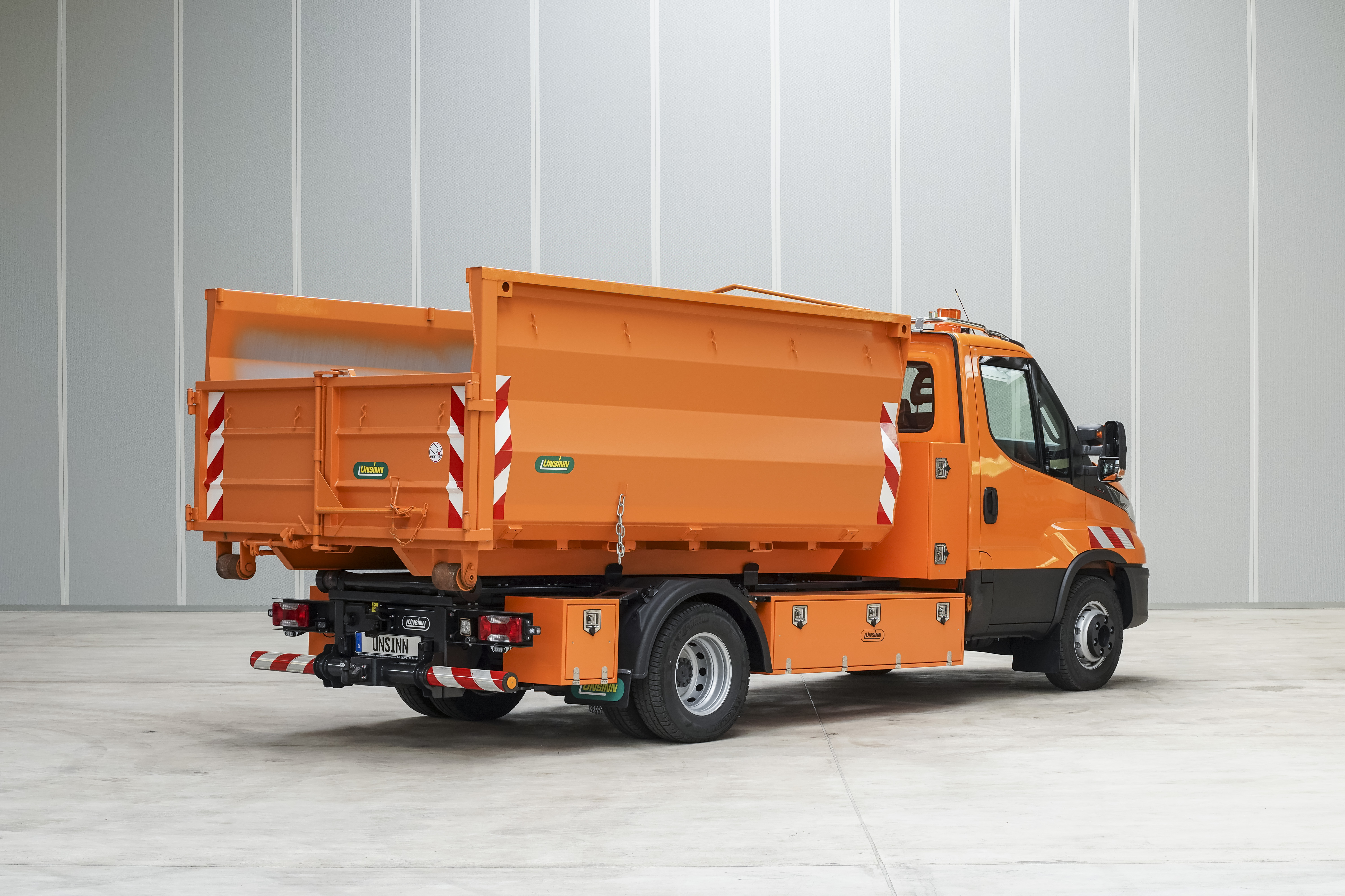 Ein Abrollkipper von UNSINN ist das ganze Jahr über vielseitig einsetzbar und somit ein unverzichtbares Allroundfahrzeug. Auf das gewünschte Basisfahrzeug, zum Beispiel von IVECO, FUSO oder MAN, baut UNSINN den dazu passenden Hakenlift und bietet neben einer einzigartigen Auswahl an Standardcontainern auch maßgeschneiderte Lösungen. Durch die Bauweise nach DIN 30722-3 lässt sich ein Container mit Fahrzeugen unterschiedlicher Klassen (bis 12 t zGG) transportieren. Container und Arbeitsgeräte können am Einsatzort bleiben, während das Fahrzeug mehrere Stellen bedient. Die Abrollkipper überzeugen mit einer hohen Transportkapazität, einer langen Lebensdauer, der einfachen Handhabung und geringen Rüstzeiten. Praktische Extras wie Rundumkennleuchten, Werkzeugkisten, Netzboxen, eine Rückfahrkamera u.v.m. bieten zahlreiche Möglichkeiten zur individuellen Fahrzeuggestaltung.