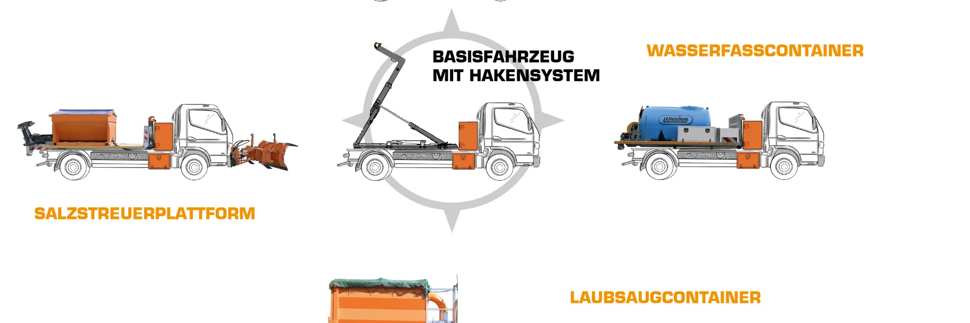 Der einfache und schnelle Wechsel von Containern und Aufbauten ermöglicht, dass ein UNSINN Kommunalfahrzeug zu jeder Jahreszeit optimal ausgelastet ist. Das spart nicht nur Zeit und Geld, sondern schafft am Bauhof auch Platz für Wichtigeres. Fallen zusätzliche Transportaufgaben an, bietet ein PKW- oder LKW-Anhänger die ideale Ergänzung. Das qualifizierte Team der UNSINN Fahrzeugtechnik steht bei der Suche nach dem passenden Fahrzeug gerne beratend zur Seite. Mehr zum vielfältigen Produktsortiment unter www.unsinn.de/orange.