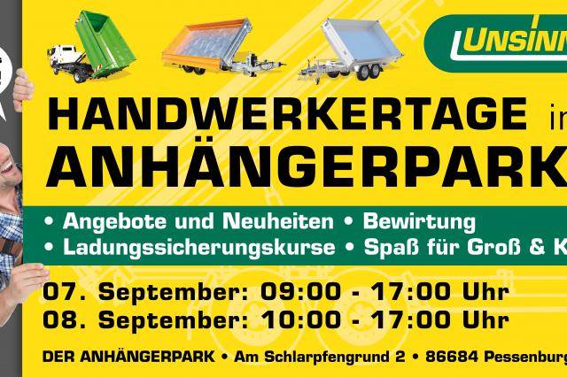 Handwerkertage im Anhängerpark UNSINN lädt zu den Handwerkertagen Am Samstag, 07. und Sonntag, 08. September 2019 öffnet die Firma UNSINN im Anhängerpark in Pessenburgheim ihre Türen für alle Profi- und Hobbyhandwerker. Weiterlesen