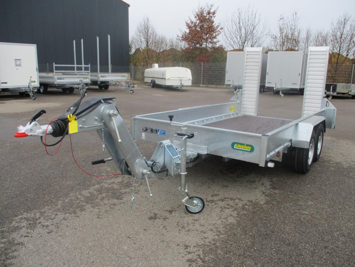 3,5 to Baumaschinenanhänger mit höhenverstellbarer Zugdeichsel, lagernd Gesamtgewicht 3.500 kg Aufbaumaße innen 3.660 × 1.800 × 300 mm zum Anhänger