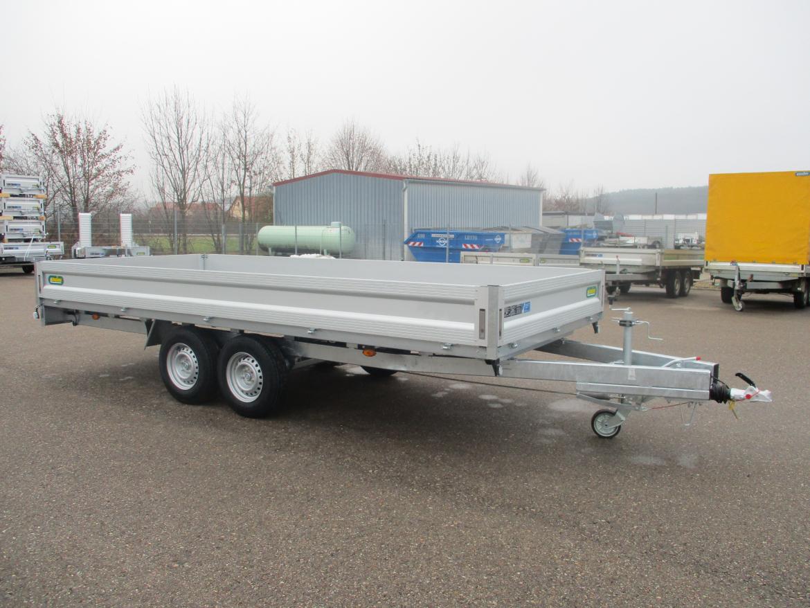 Großer 3,5 to Pritschenhochlader 4.860 mm, lagernd Gesamtgewicht 3.500 kg Aufbaumaße innen 4.860 × 2.040 × 350 mm zum Anhänger