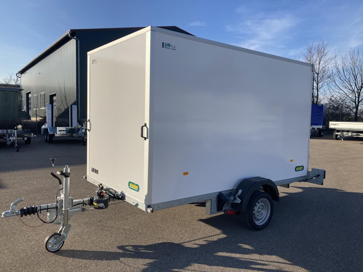 1,8 To 1-Achs Leichtbau-Kofferanhänger, absenkbar mit Heckklappe Gesamtgewicht 1.800 kg Aufbaumaße innen 3.150 × 1.770 × 1.940 mm zum Anhänger