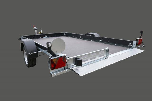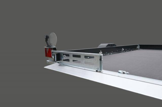 • Durchgehender Auffahrkeil mit klappbarem Kennzeichenhalter zur Nutzung der gesamten Ladeflächenbreite (zum Auffahren)