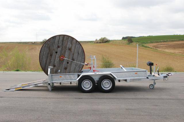 Halterung für Kabeltrommel, mit Ratsche, ca. 600-1000 mm höhenverstellbar, Belastung max. 1500 kg, Windenbock und 900 kg Handseilwinde, inkl. schraubbaren Bodenverstärkungen