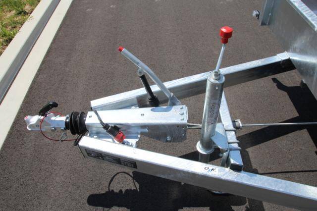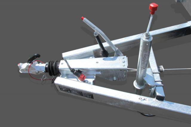 • Verstärktes, an einer separaten Quertraverse montiertes Automatikstützrad mit einer Tragkraft von 500 kg für sicheres Abstellen des Anhängers