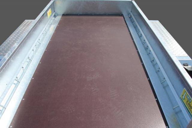 Siebdruckplatte durchgehend (= ohne Stoß), in das Bordwandprofil eingefasst für mehr Stabilität & Langlebigkeit