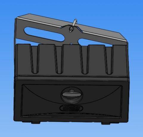Topfmagnet mit Schlüsselanhänger zum Herausziehen der Zurrpins bei geöffneter Bordwand