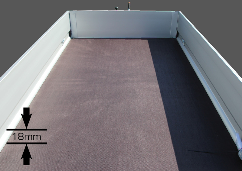 -—> Siebdruckplatte durchgängig (= ohne Stoß), in das Bodenrahmenprofil eingelassen für mehr Stabilität und Langlebigkeit