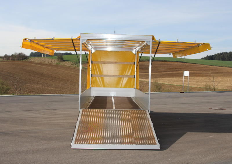 Schiebeplane in Fahrtrichtung rechts mit geschlossenem Dach, IL 3660 mm, bis Gestellhöhe 1450 mm