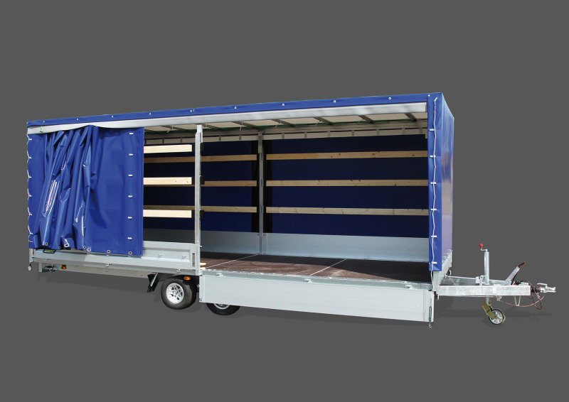 Schiebeplane in Fahrtrichtung links mit geschlossenem Dach, IL 3660 mm, ab Gestellhöhe 1650 mm
