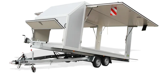 Durch Schwerpunktverlagerung oder hydraulisch nach hinten kippbar für schnelle und sichere Beladung