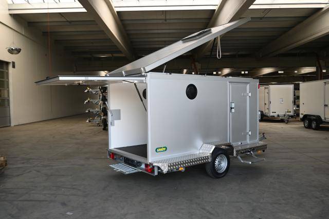 • Verstärktes, an einer separaten Quertraverse montiertes Automatikstützrad mit einer Tragkraft von 500 kg für sicheres Abstellen des beladenen Anhängers
