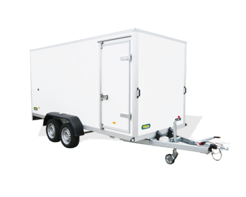 Stäbchenzurrschienen aus Aluminium mit Gummi ummantelt an der Stirnwand auf Höhe 700 mm & 1200 mm montiert, IB 1420 mm