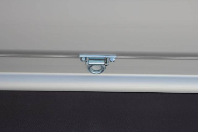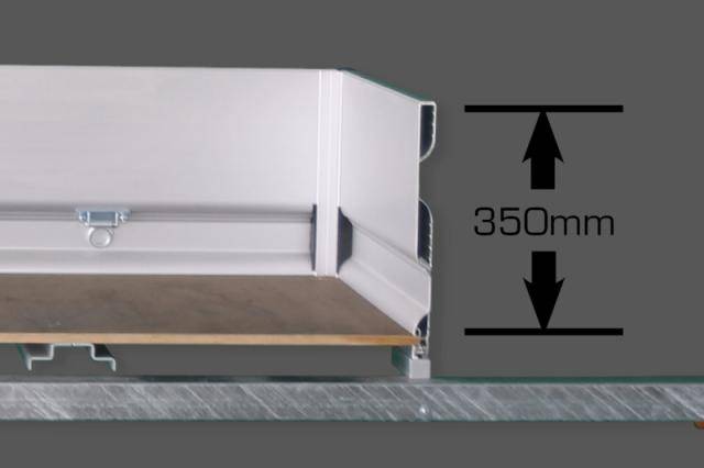Bordwandaufsatz aus eloxiertem Aluminium 300 mm, UNSINN-Profil, in Kombination mit Deckel aus Aluminium mit Gasfederunterstützung, heckseitig zu öffnen,
