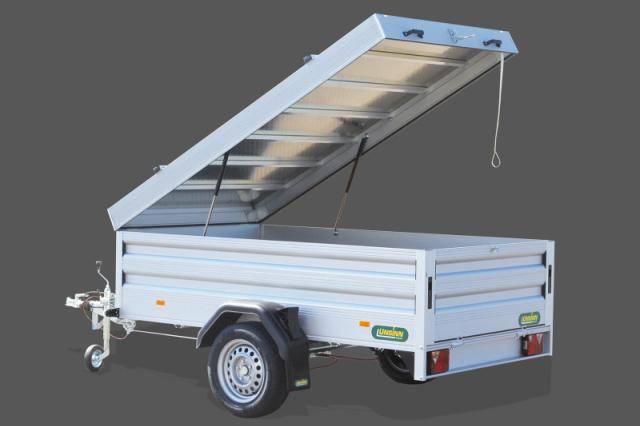 Bordwandaufsatz aus eloxiertem Aluminium 400 mm, UNSINN-Profil, in Kombination mit Deckel aus Aluminium mit Gasfederunterstützung, heckseitig zu öffnen,