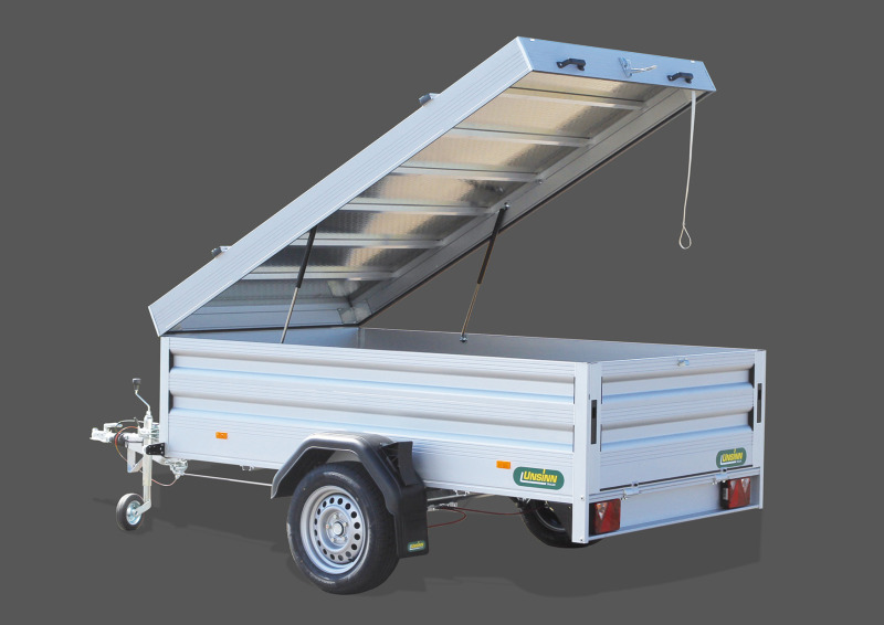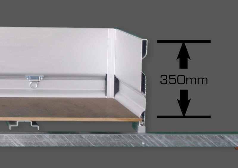 Bordwandaufsatz aus eloxiertem Aluminium 300 mm, UNSINN-Profil, in Kombination mit Deckel aus Aluminium mit Gasfederunterstützung, heckseitig zu öffnen,