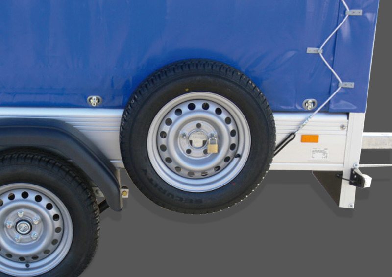 • Ersatzradhalter an der Stirnbordwand montiert, in Fahrtrichtung rechts