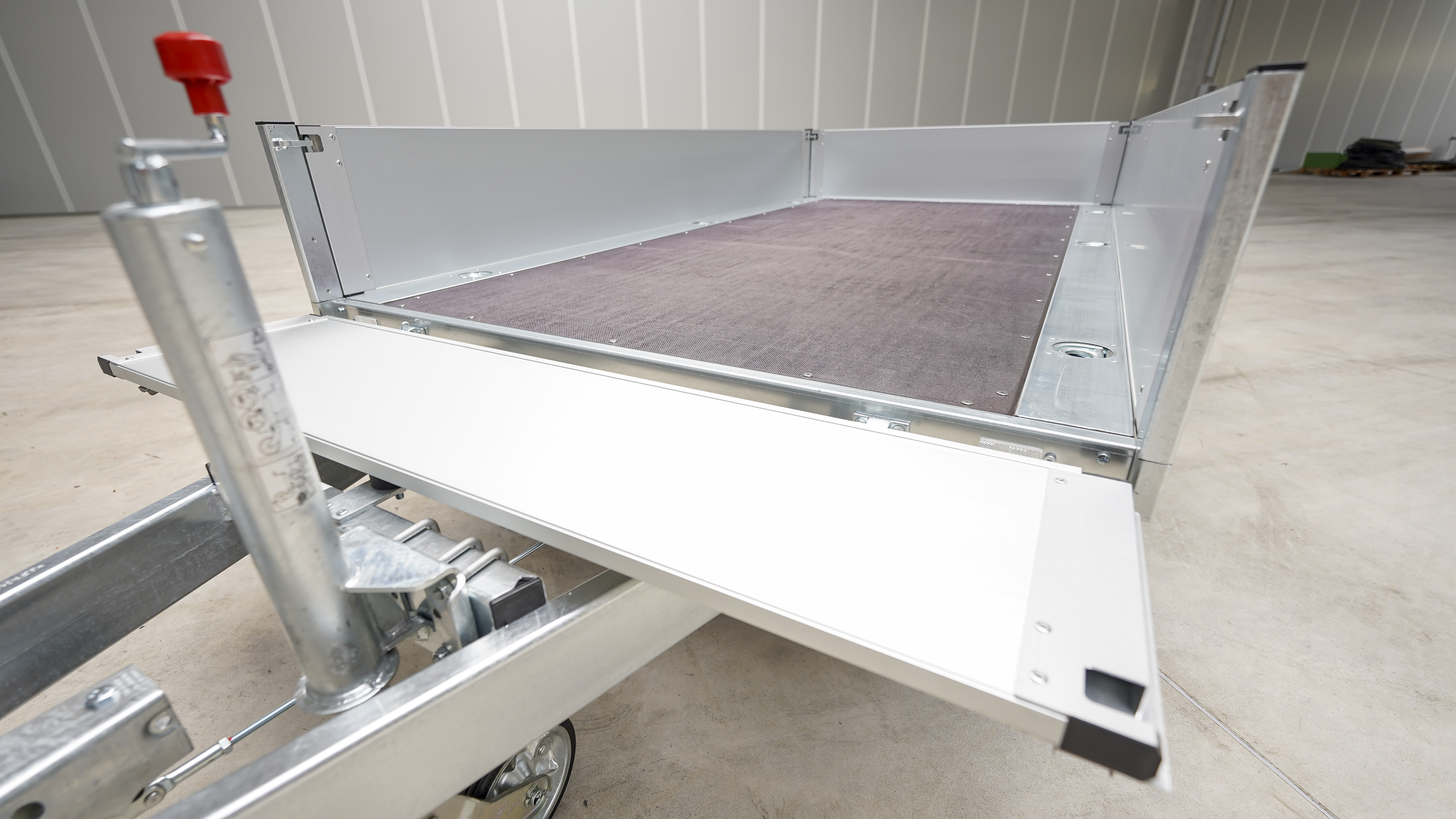 • Stirnbordwand abklappbar, nur bei einachsigen Fahrzeugen (zulässiges Gesamtgewicht < 2000 kg)