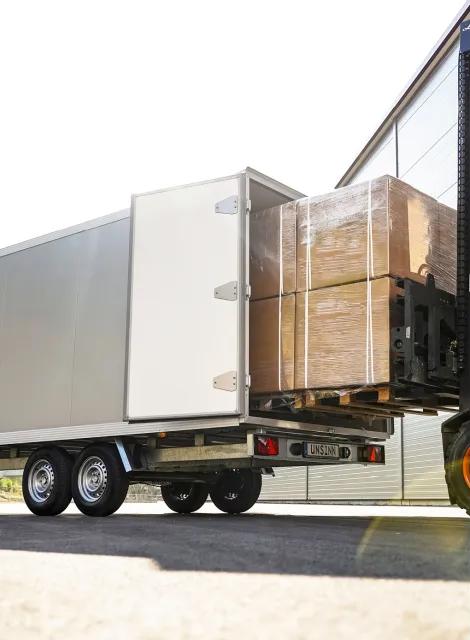 Koffer- und Kühlkofferanhänger unterscheiden sich von außen kaum. Dabei haben es die Kühlanhänger von UNSINN in sich: Sie besitzen eine Isolierschicht und ein Kühlaggregat und sind Ihre perfekte Lösung zum Transport frischer Lebensmittel. Mit einem Kofferanhänger PKW befördern Sie Güter aller Art einfach und sicher.