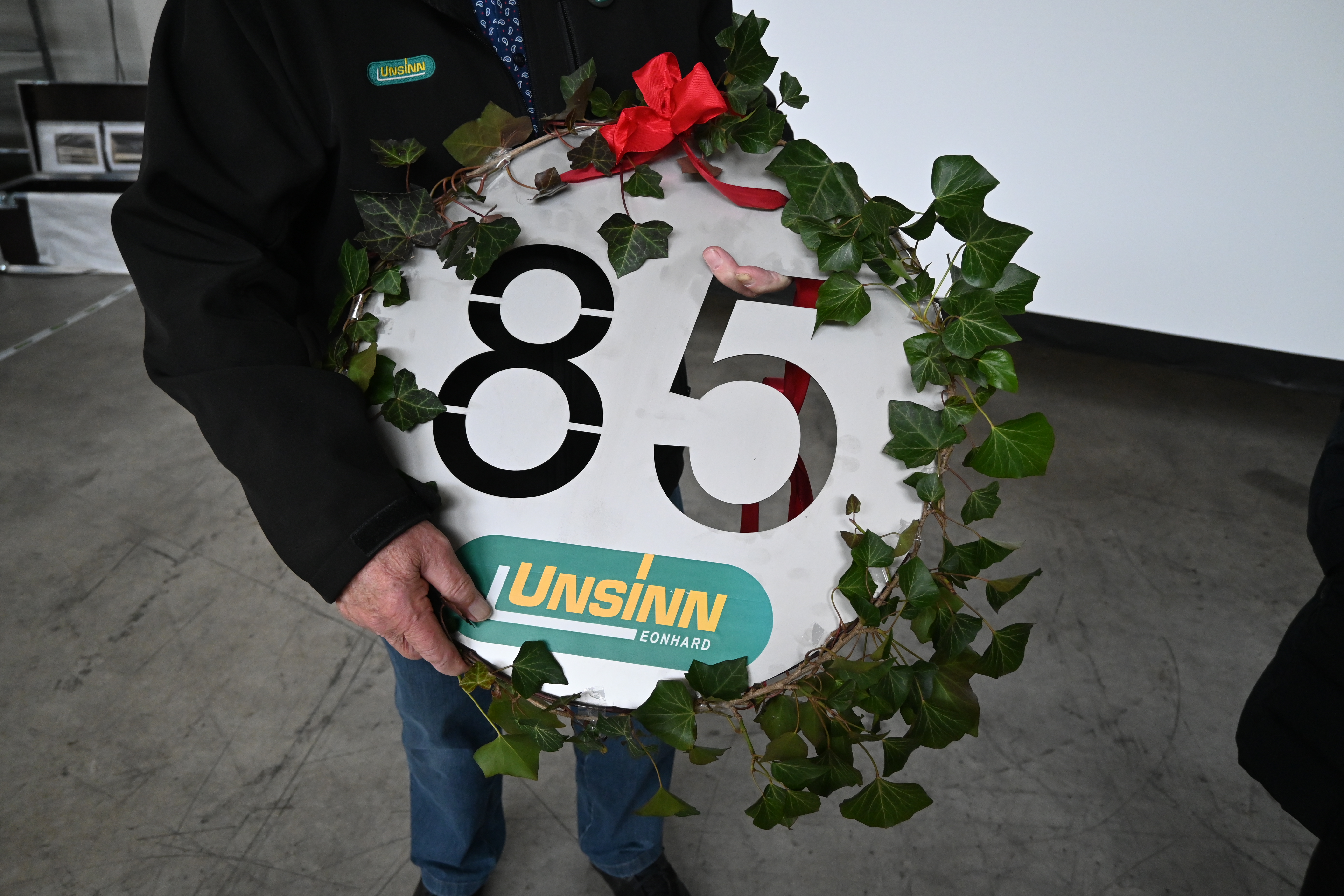 Der Gründer der Firma UNSINN Fahrzeugtechnik GmbH Leonhard UNSINN feierte am 11. Februar seinen 85. Geburtstag. Im Rahmen einer internen Veranstaltung gratulierte die komplette Belegschaft von 286 Mitarbeiterinnen und Mitarbeitern dem Seniorchef persönlich. Die Personalmanagerin Marianne Höß bedankte sich bei Herr Unsinn: „Ohne unseren Chef wären wir jetzt heute nicht alle hier, er hat immer für die Entwicklung der Firma gekämpft, dafür danken wir ihm ganz herzlich! Wir wünschen unserem Seniorchef noch viele schöne Jahre, bei guter Gesundheit.“