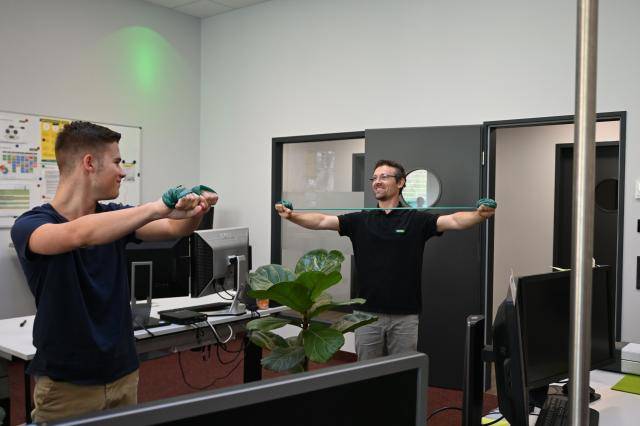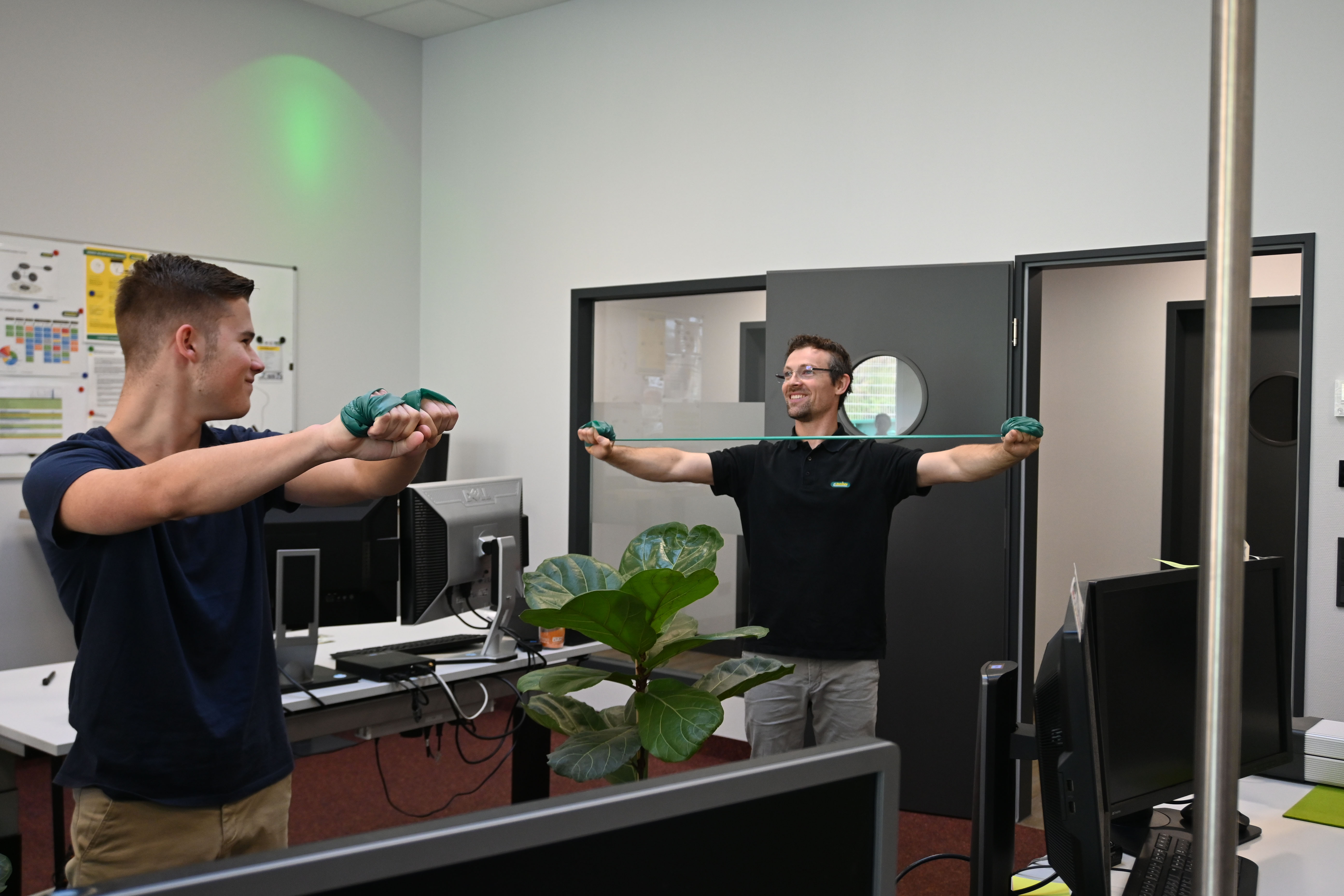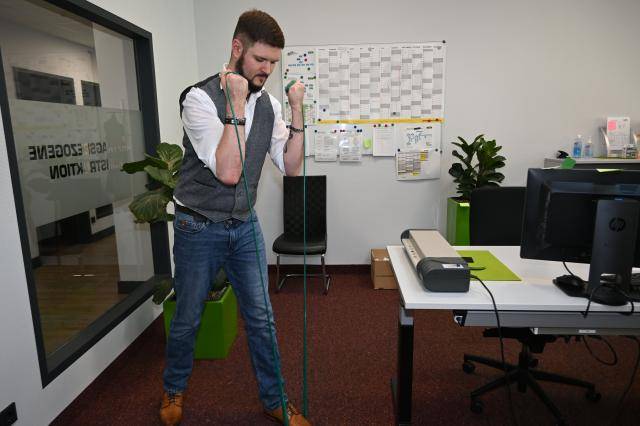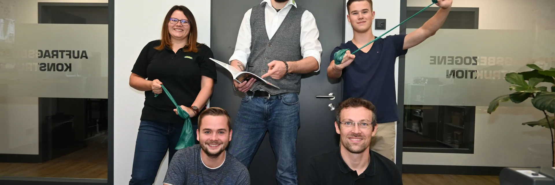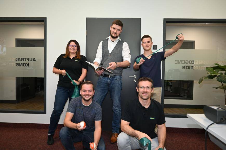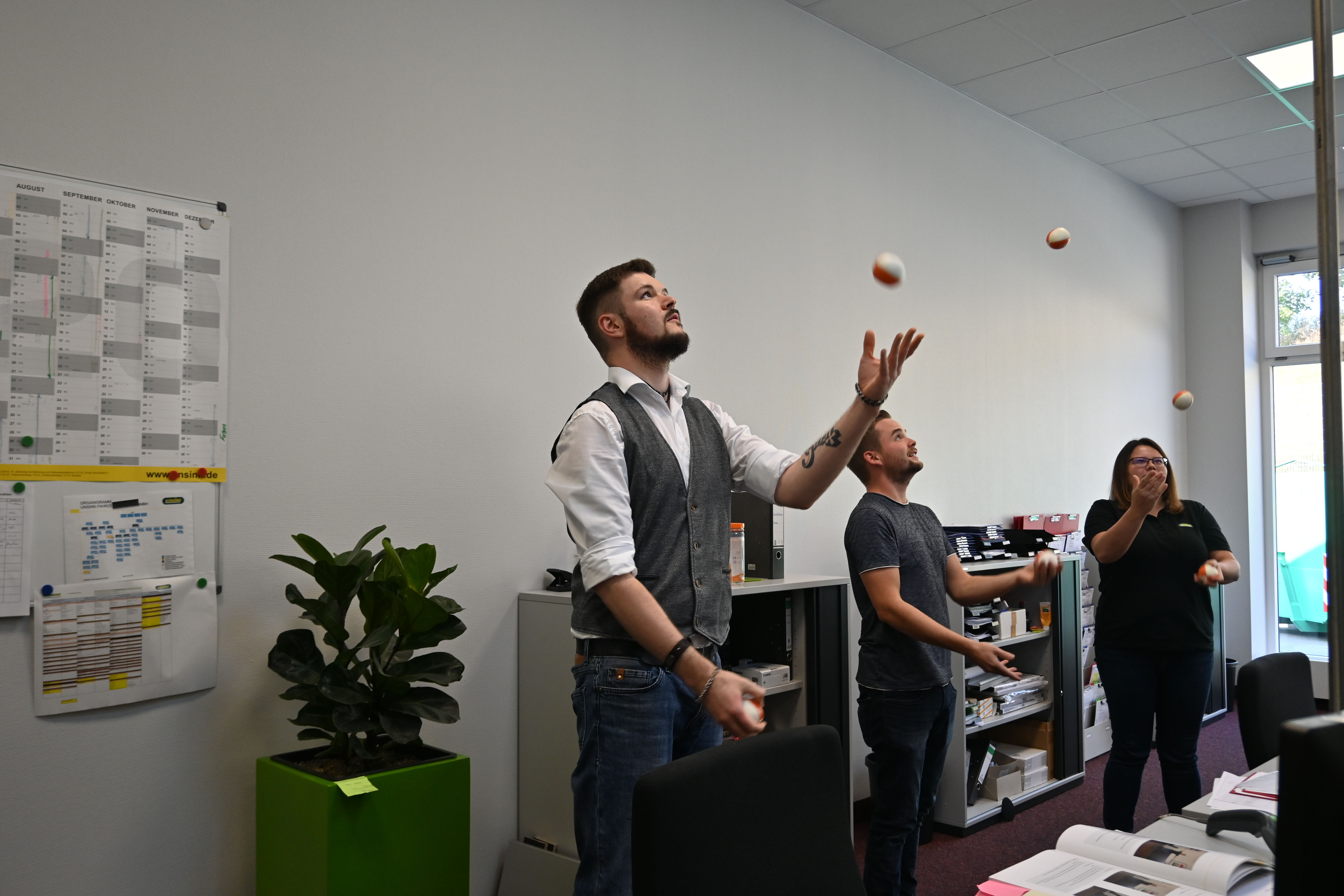 Ein ehemaliger Kollege, der uns hin und wieder als Werkstudent unterstützt, war von dem Übungskatalog „MACH MIT BLEIB FIT!“ dermaßen angetan, dass er sich als Trainingsleiter für unsere „Aktive Pause“ angeboten hatte.