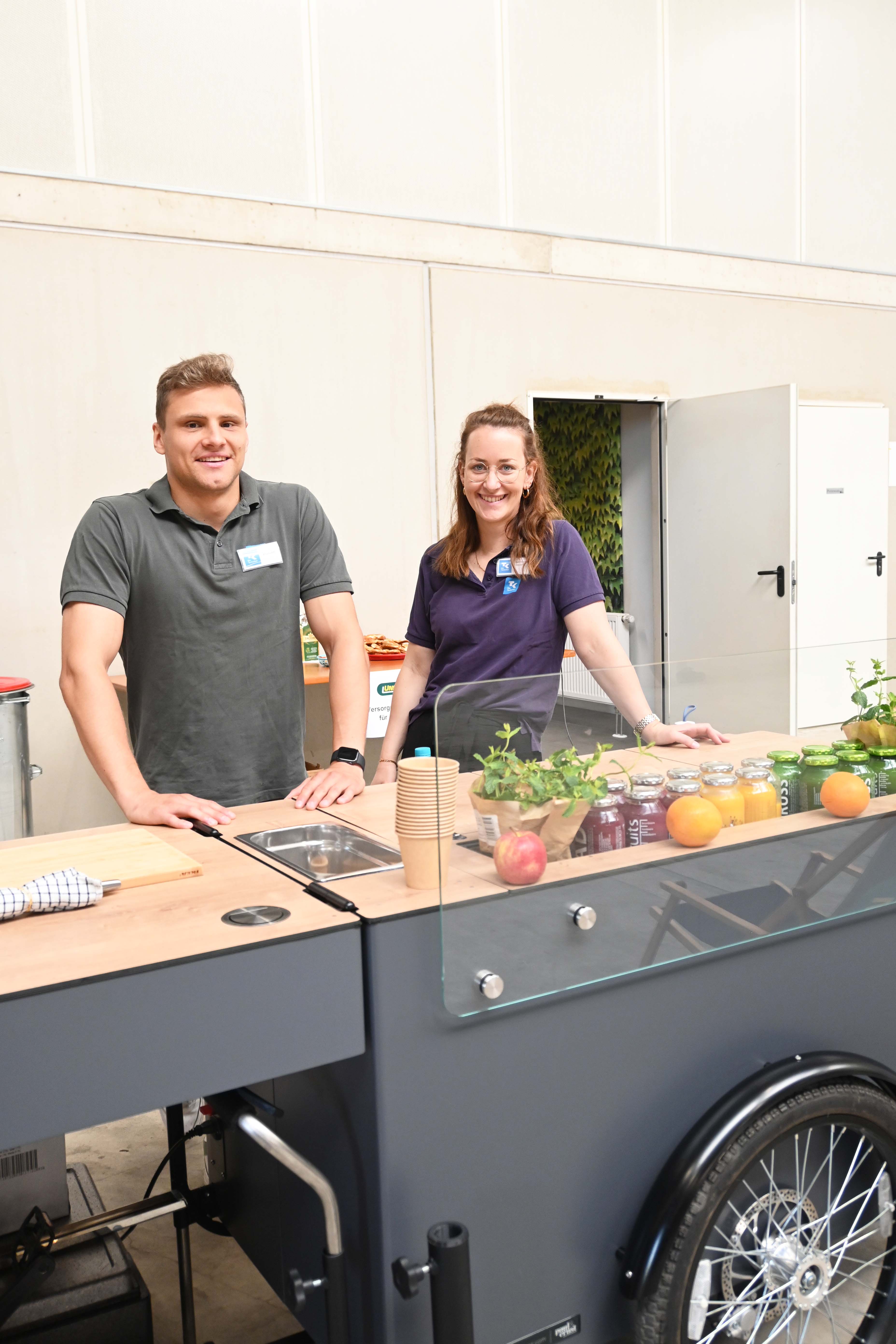 Neben leckeren Smoothies gab es einen besonderen Blickfang für Alle: Das Bungee-Trampolin – Koordination, Kraft und Gleichgewicht waren gefragt.
