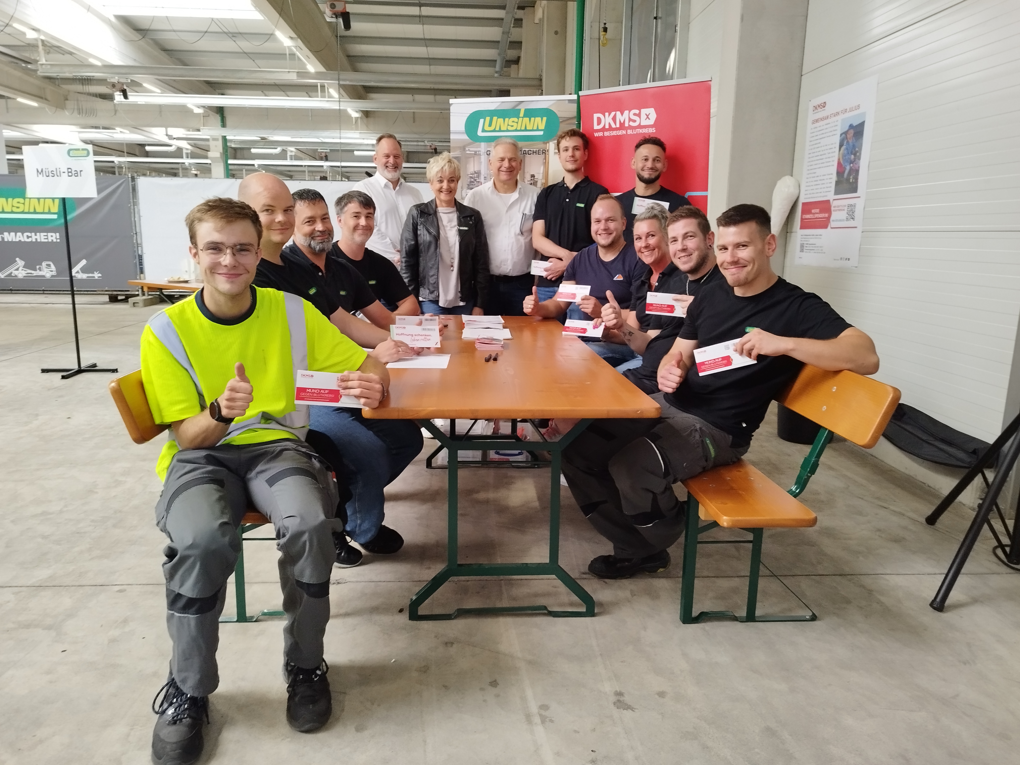 Das UNSINN-Team zeigte sich äußerst interessiert, sich als Stammzellenspender in der Deutschen Knochenmarkspenderdatei (DKMS) registrieren zu lassen. Das Ausklingen des Tages erfolgte durch eine sportliche Verlosung und einen leckeren Rahmfleck.