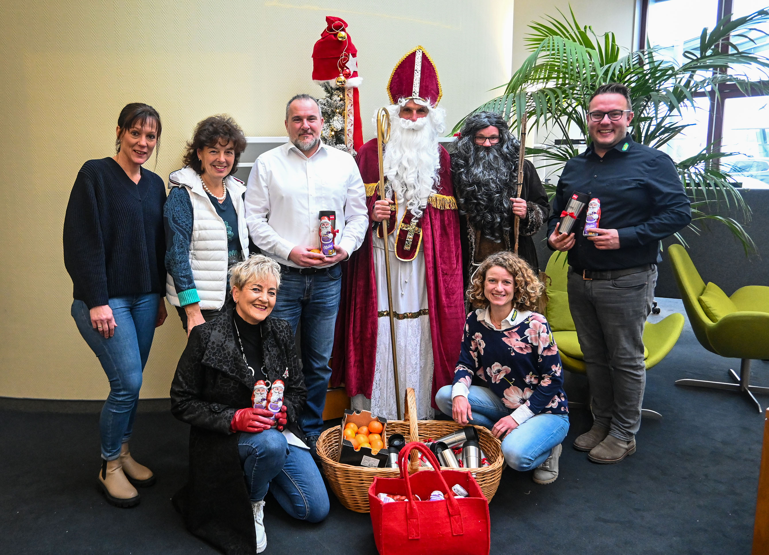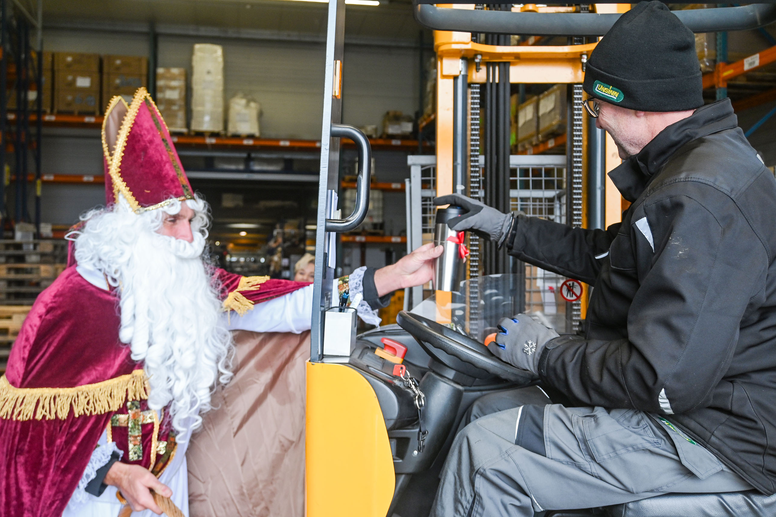 Nikolaus-Besuch bei UNSINN! Das Trio Nikolaus, Knecht Ruprecht und Rosa Unsinn sorgte für vorweihnachtliche Freude. Neben Mandarinen und Schoko-Nikoläusen gab es für alle einen coolen UNSINN-Thermobecher, der bis Weihnachten kostenlos an unseren Automaten aufgefüllt werden konnte.