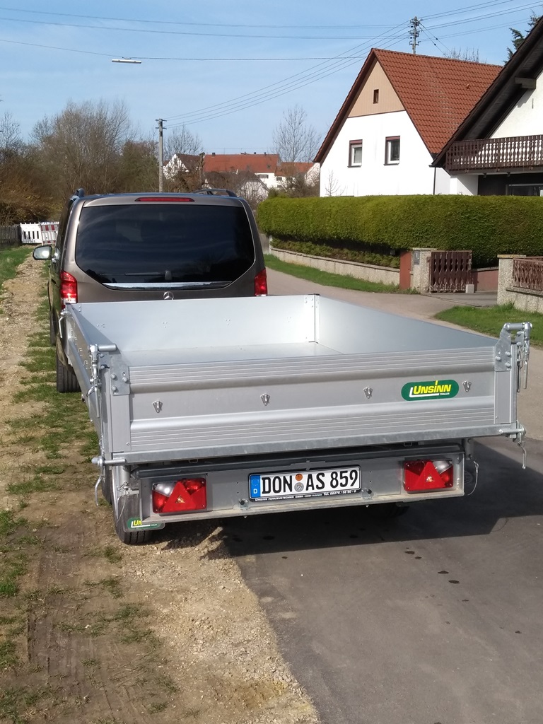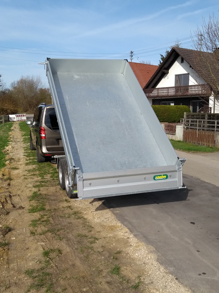 Der 3-Seiten-Kipper ist wirklich perfekt, hat eine super Qualität und Ausstattung und hat auch, egal ob leer oder beladen, sehr gute Fahreigenschaften. Man merkt ihn eigentlich gar nicht. Ich kann den Anhänger und die Firma Unsinn uneingeschränkt weiterempfehlen und würde den Anhänger jederzeit wieder so kaufen. Macht weiter so.