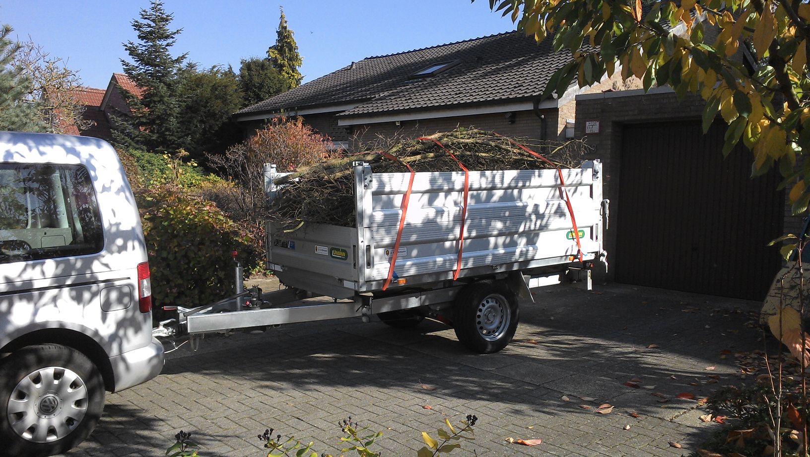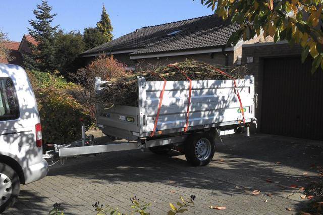 Technisch sind wir mit dem Anhänger auch super zufrieden. Er läuft leer, wie auch voll beladen super hinter dem Auto, kippt alles ab, was abzukippen ist und ist wirklich stabil und robust gebaut. Wir sind auch sehr froh darüber, dass wir den Anhänger mit originalen 2 x 400 mm Bordwänden gekauft haben und nicht mit einem Drahtgitteraufsatz. Gerade wenn man Strauch- und Astwerk fährt, verhakt sich nichts beim Abkippen - egal wie und wie dicht es drauf gepackt wurde, es verhakt sich nichts beim Laden und Feststampfen, es rieselt auch nichts an Kleinkram heraus (Tannennadeln, Häckselgut oder zwischen den Zweigen geladenes Sägemehl etc.) und die Bordwände sind wirklich leicht und gleichzeitig sehr stabil. Dass der Anhänger innere und äußere Zurpunkte bietet, ist auch eine super Sache.