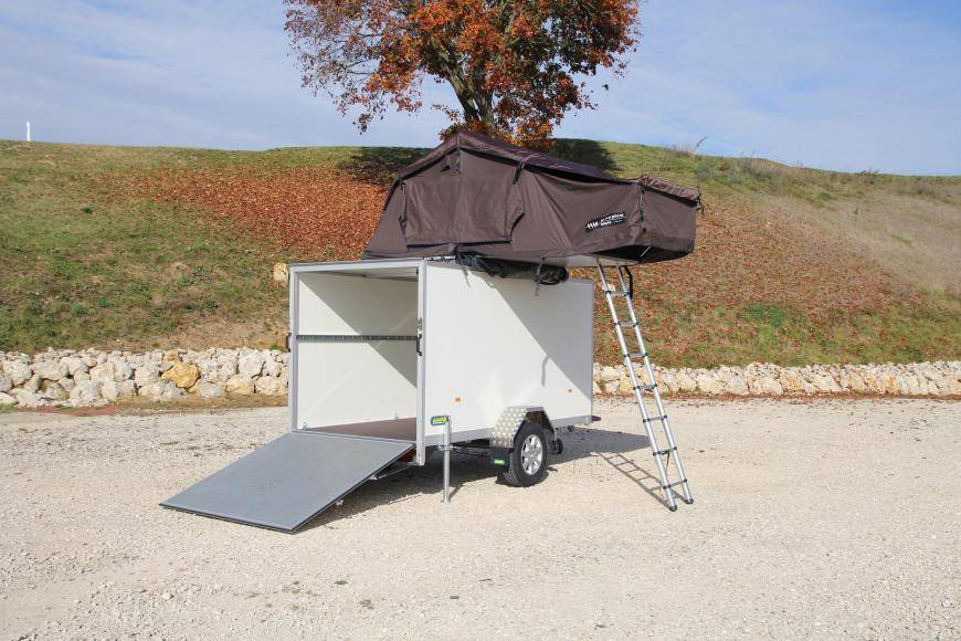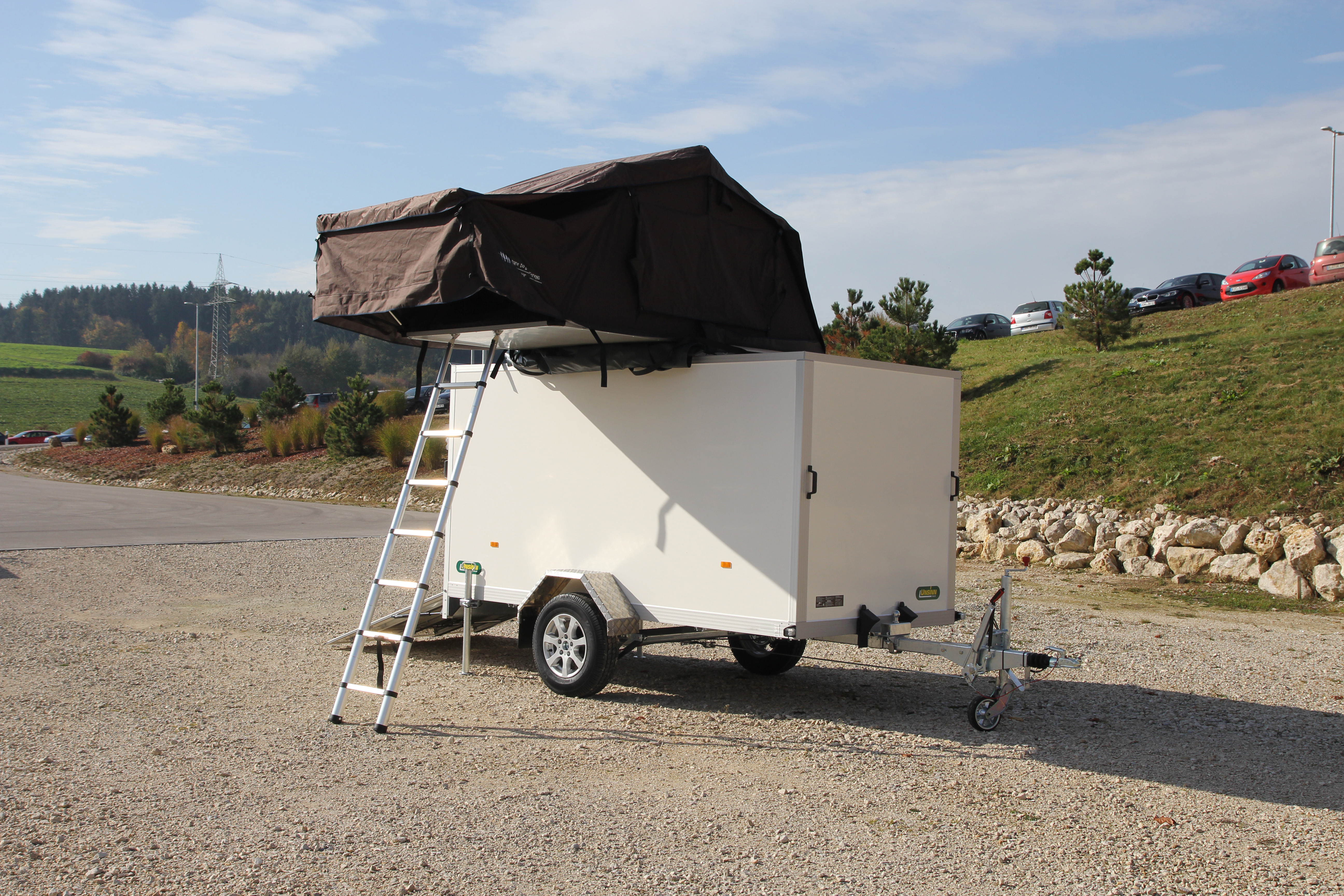 Anhänger für Abenteuerer mit einem Zeltdach.