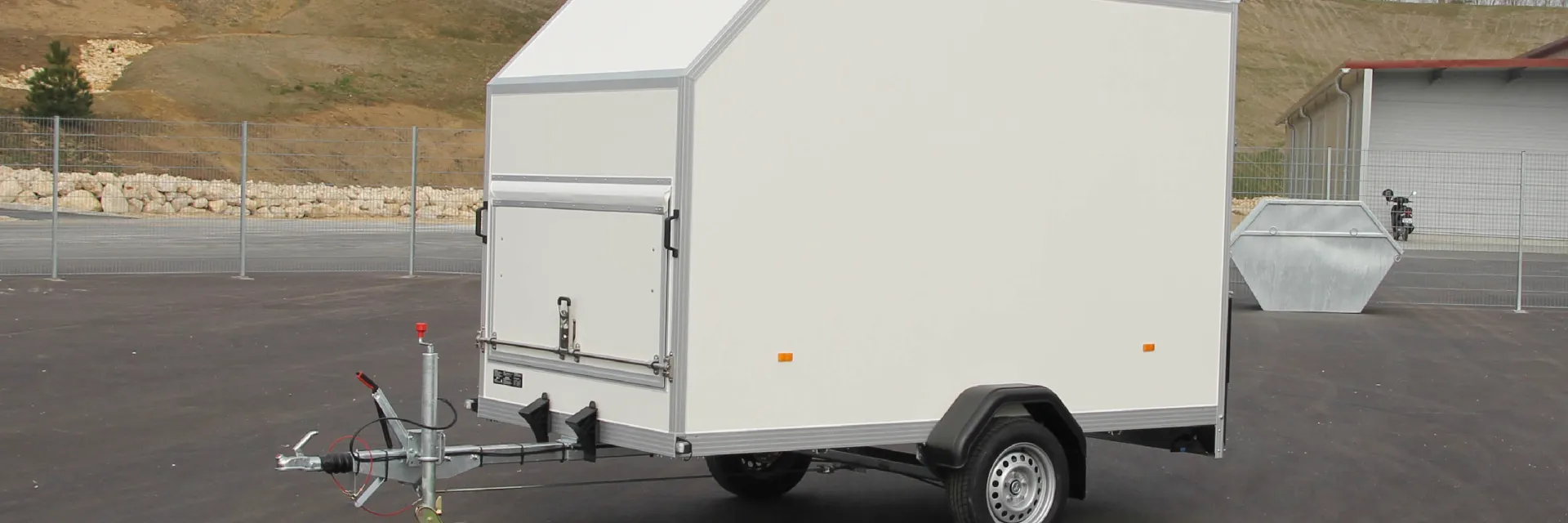 Bei einem Kofferanhänger sind bei Gestaltung des Aufbaus kaum Grenzen gesetzt. Türen, Fenster, Dachluke oder eine Klappe können nach Ihren Wünschen eingebaut werden.