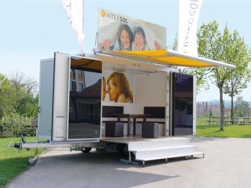 Sparen Sie viel Zeit und Personal beim Einsatz eines Messeanhängers. Mit wenigen Handgriffen ist der Kofferanhänger aufgebaut und Sie haben viel Platz, um sich zu präsentieren und Kunden zu informieren.