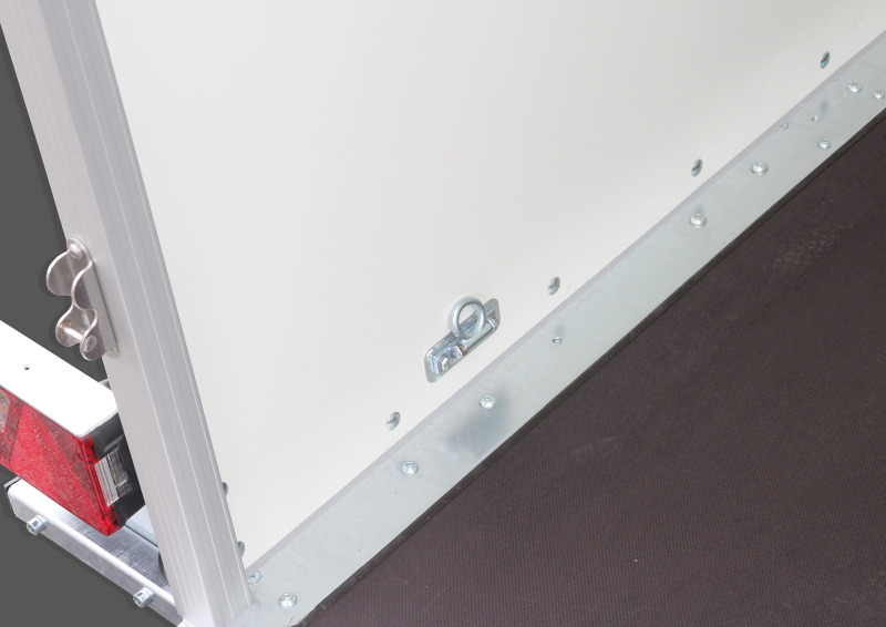 - 6 Zurrringe in der Seitenwand, klappbar, symmetrisch verteilt, jeweils belastbar mit bis zu 300 daN (kg)