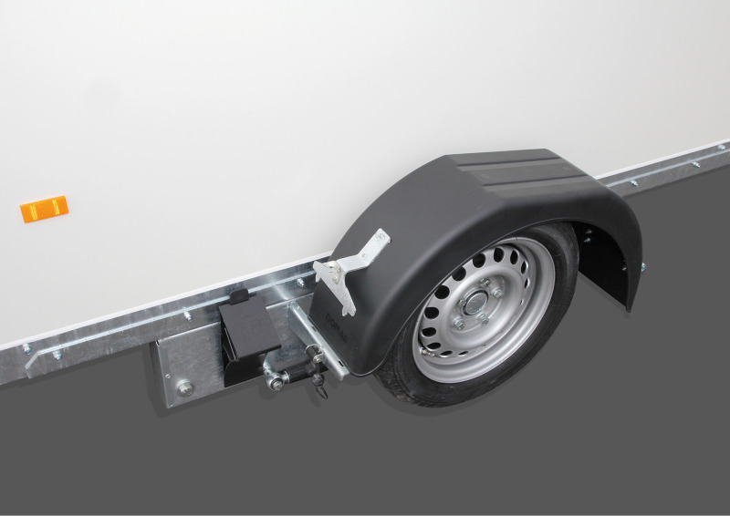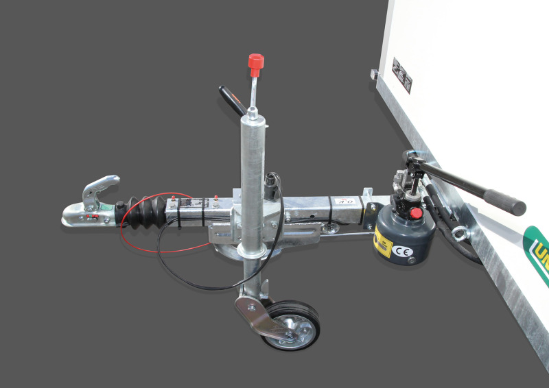 - Zugrohrdeichsel mit verstärktem Automatikstützrad (Tragkraft von 500 kg für sicheres Abstellen des Anhängers)