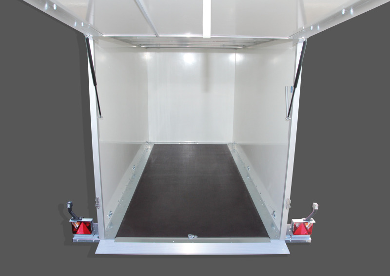 - Heckklappe nach oben zu öffnen mit Gasfederunterstützung und außenliegendem absperrbarem Edelstahl- Drehstangenverschluss, Öffnungsmaße (B x H): 1700 x 1840 mm, Innenhöhe 1940 mm