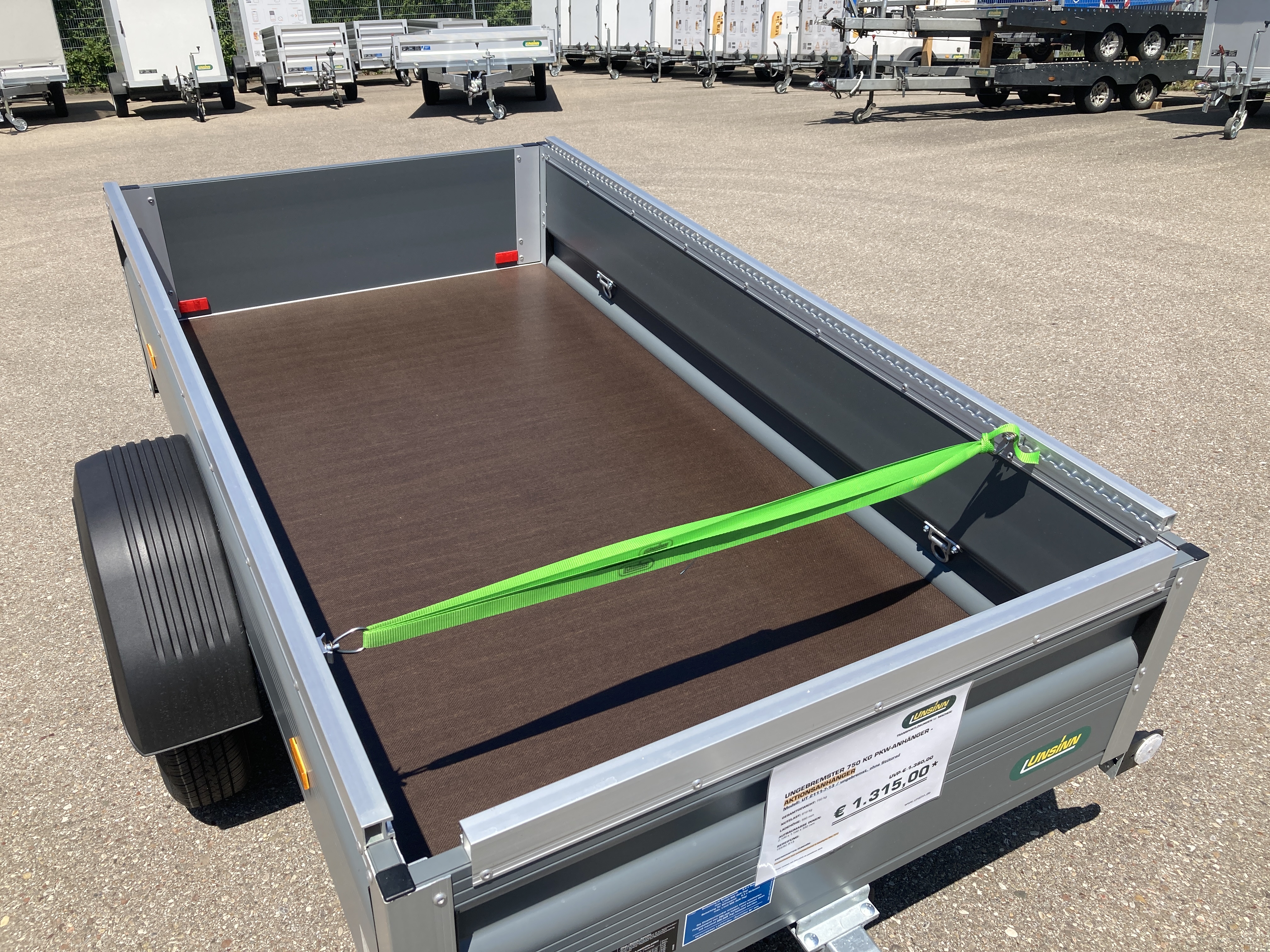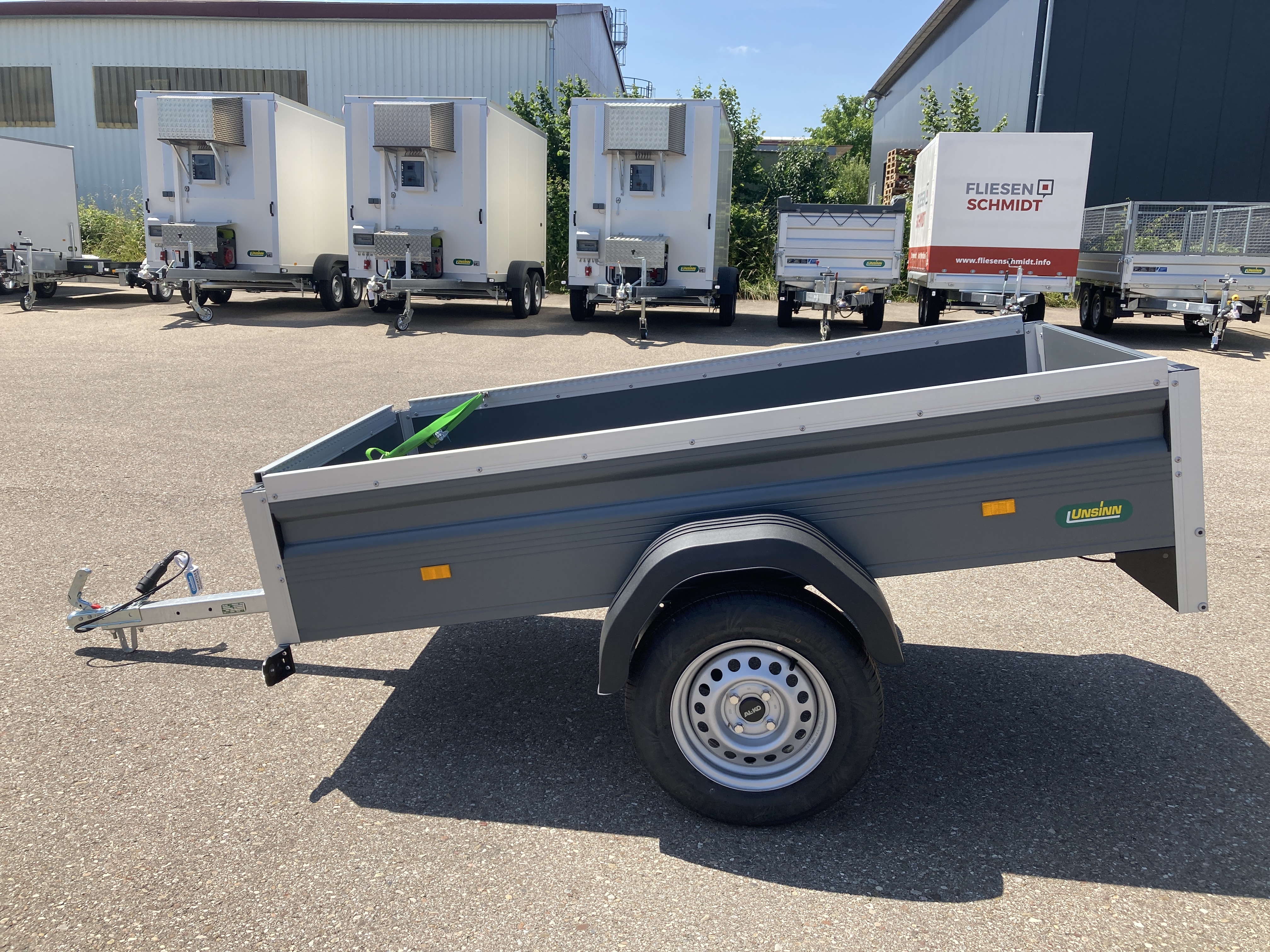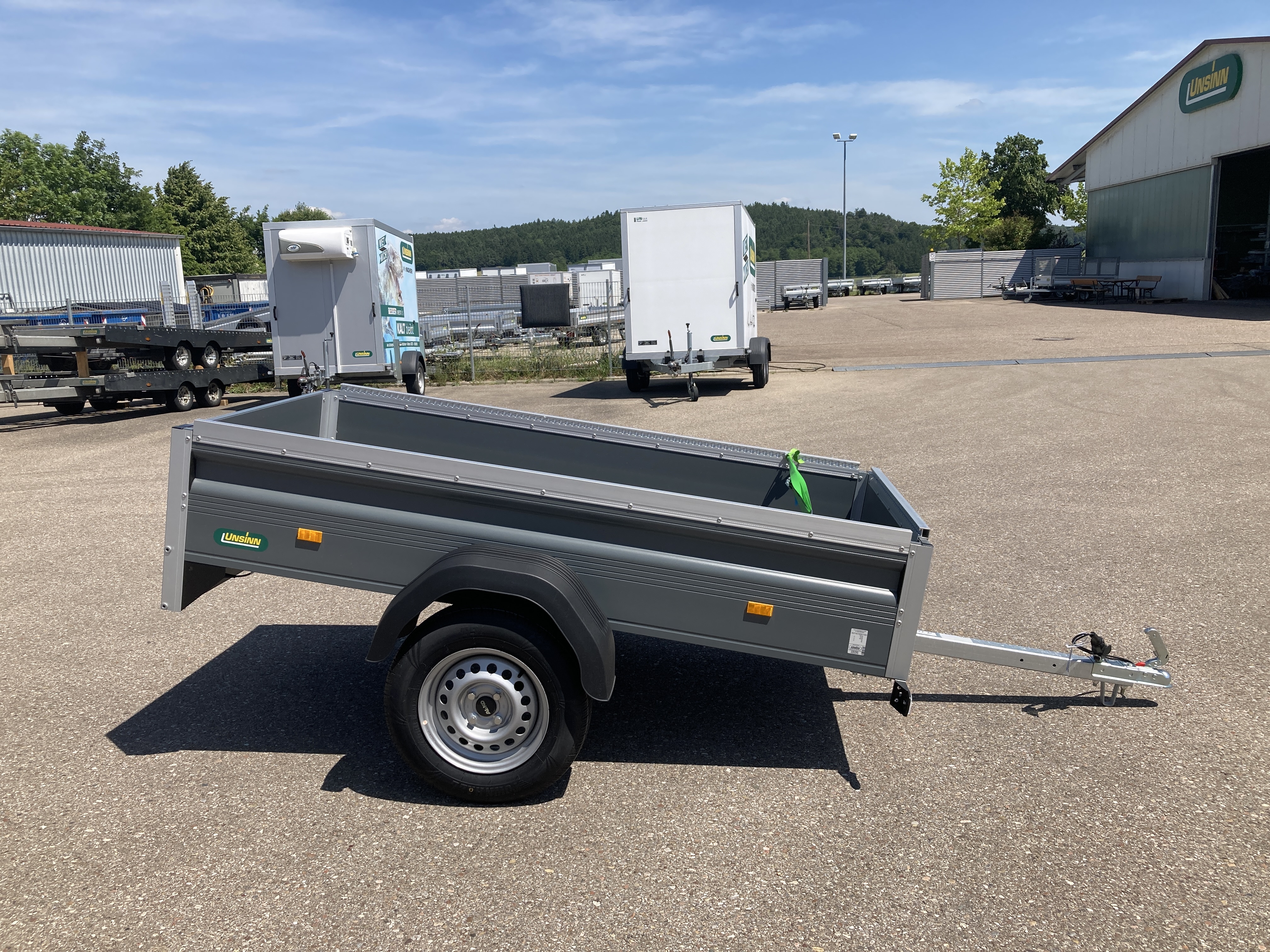 Ungebremster 750 kg 1-Achs-PKW-Anhänger mit pulverbeschichteten Bordwänden in RAL 7012 basaltgrau