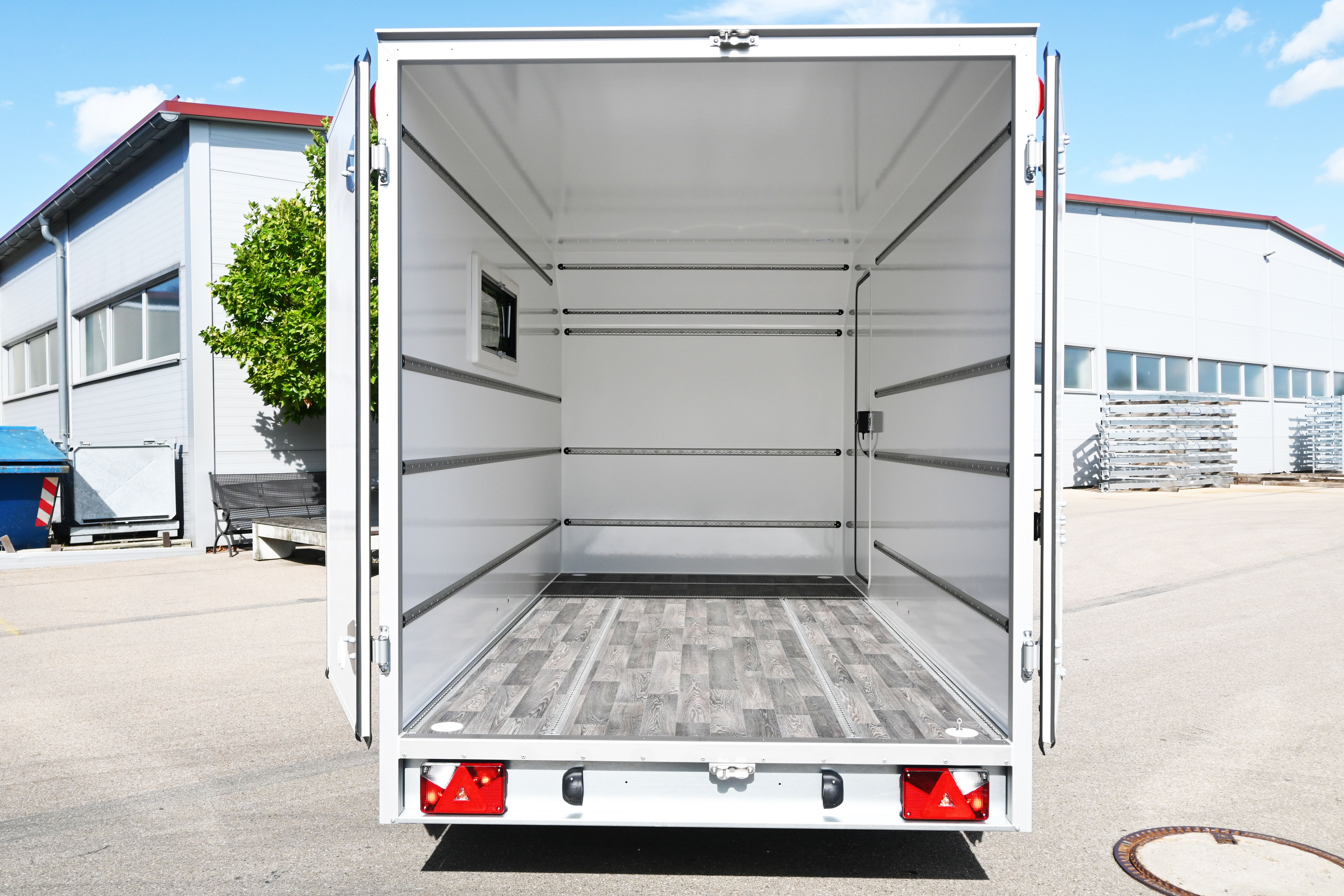 • Doppelflügelige Hecktüren mit Scharnieren aus Aluminium, Öffnungsmaß:
