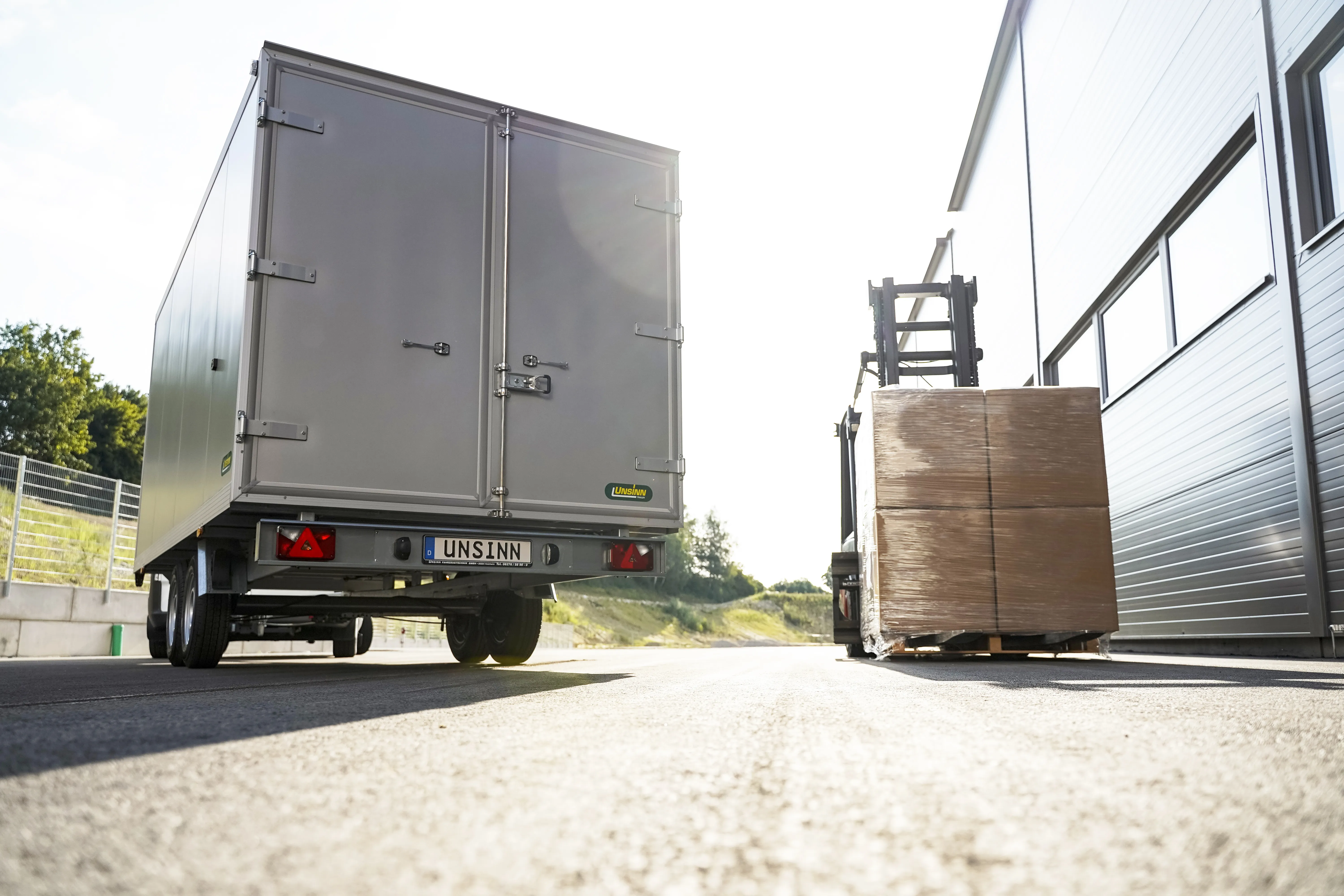 In der Basisausführung werden diese Kofferanhänger mit hochwertigem Thermo-Sandwich-Aufbau mit Innen- und Außenhaut aus feuerverzinktem Stahlblech, Ladefläche aus mehrfach verleimter, rutschhemmender Siebdruckplatte, verwindungssteifem Längsfahrgestell und verschweißter, komplett im Tauchbad feuerverzinkter Hohlprofilkonstruktion oder mit Aluminiumfahrgestell für sichere Fahreigenschaften geliefert. Darüber hinaus garantiert ein verstärktes, automatisches Stützrad, das sichere Abstellen des beladenen des Anhängers.