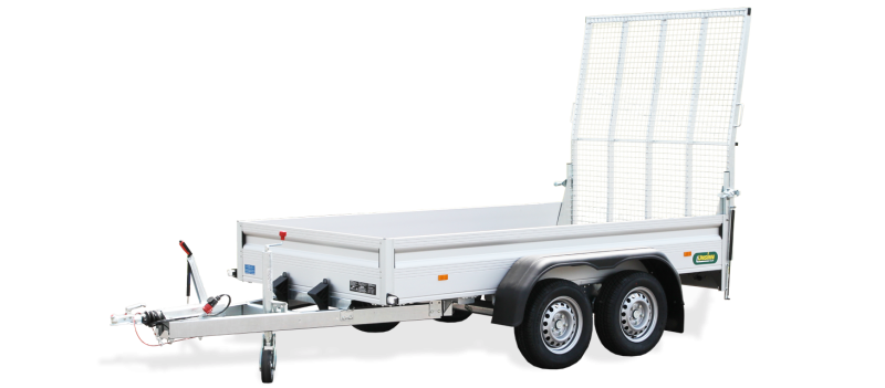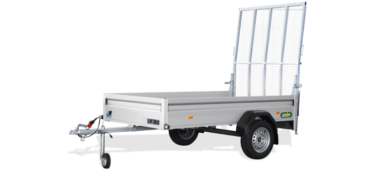 Für private und gewerbliche Kunden bieten wir unsere Kastenanhänger auch mit Gitterklappe an und ermöglichen mit dieser Spezifikation den Transport kleinerer Maschinen wie Rasenmähertraktoren, Minibagger oder verschiedenste Garten- und Baugeräte. Die Stahlgitterauffahrklappe mit Gasfederhubhilfe ist über die gesamte Anhängerbreite am Heck stehend montiert. Die Tragkraft beträgt 500 kg.