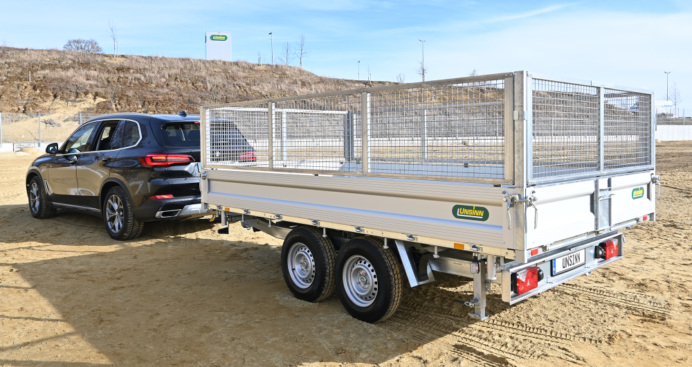 Der neue UDK-S ergänzt die innovative UDK-Anhängerserie von UNSINN. Er ist ausgestattet mit 400 mm hohen Stahlbordwänden mit einer integrierten in Schwarzgrau (RAL 7021) pulverbeschichteten Netz- und Planenleiste.